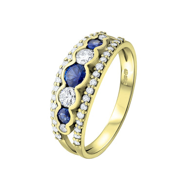 Diamond and Sapphire Traditional Rubover Style Oval Cluster. 7mm x 5mm Oval Centre Stone surrounded by Diamonds with a total Diamond Weight of c.0....