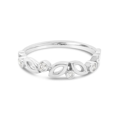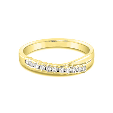 Flat back wedding ring with cut out, 5.2mm wide, set with 31 diamonds.