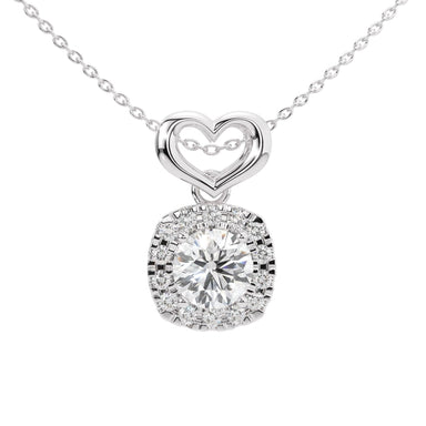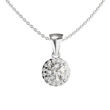 A modern romantic style, featuring a 0.50ct round, brilliant cut lab diamond with a 0.12ct diamond halo. Articulated heart bail Lab Grown Diamond -...