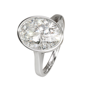 A timeless classic, this single stone lab diamond ring features an oval 2.50ct diamond rubover set in a sleek, polished band. Yellow gold option ha...
