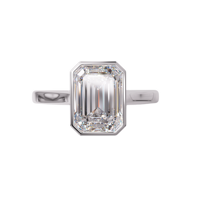 A timeless classic, this single stone lab diamond ring features an emerald 2.50ct diamond rubover set in a sleek, polished band. Yellow gold option...