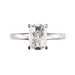 A timeless classic, features an elongated cushion cut diamond claw set with a hidden halo of grain set diamonds.